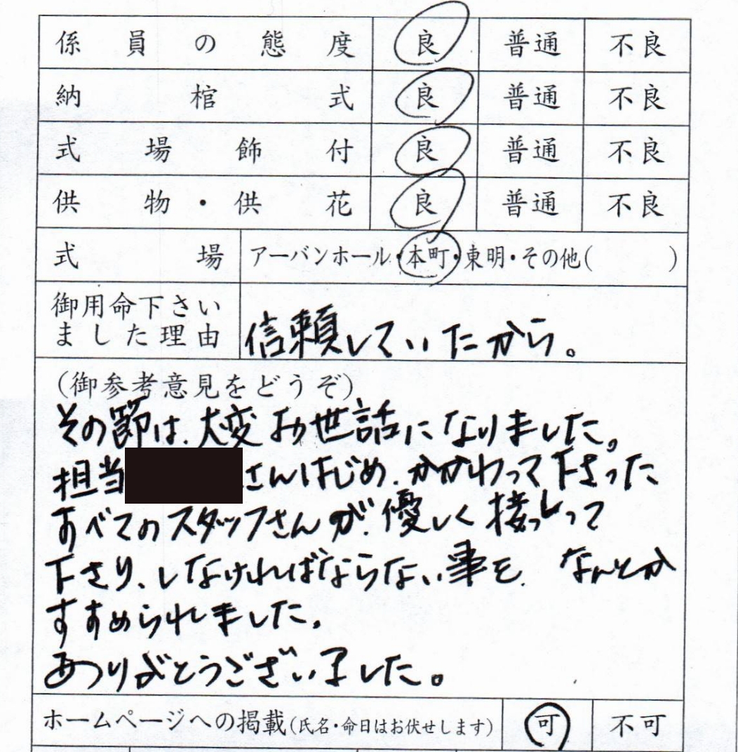 その節は、大変お世話になりました。 担当さんはじめ、かかわって下さったすべてのスタッフさんが、優しく接してくださり、しなければならない事をなんとか進められました。ありがとうございました。